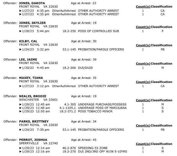 POLICE: 7 Day FRPD Arrest Report 1/30/2023