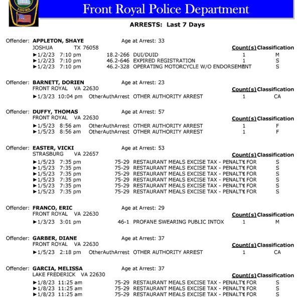 POLICE: 7 Day FRPD Arrest Report 1/9/2023