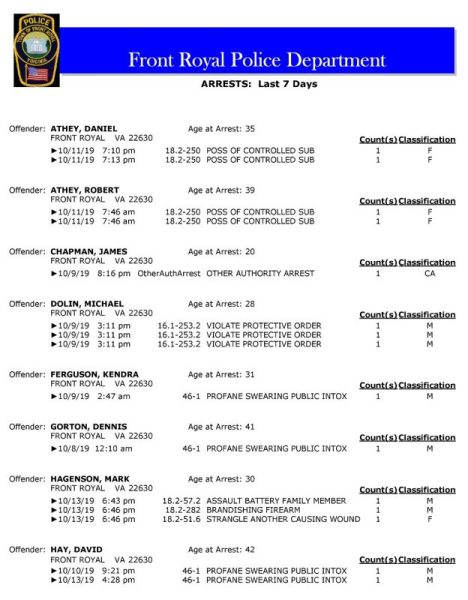 POLICE: 7 Day FRPD Arrest Report 10/14/2019