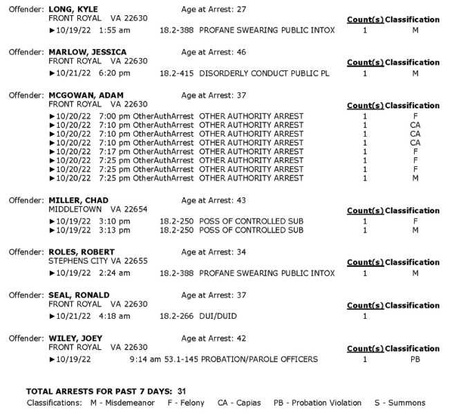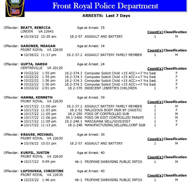 POLICE: 7 Day FRPD Arrest Report 10/24/2022