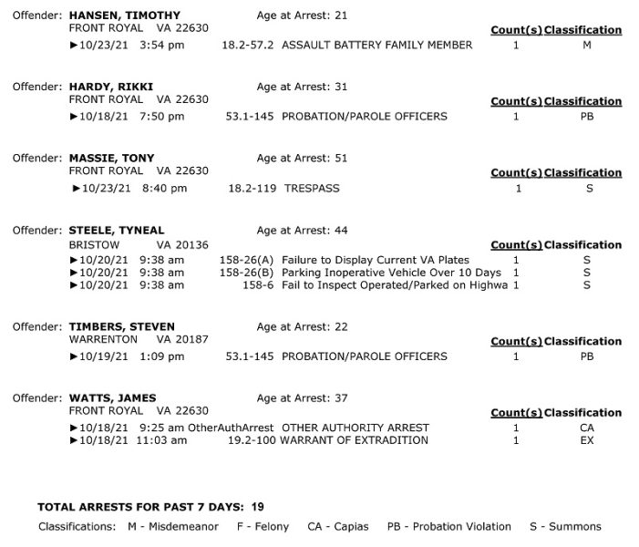 POLICE: 7 Day FRPD Arrest Report 10/25/2021