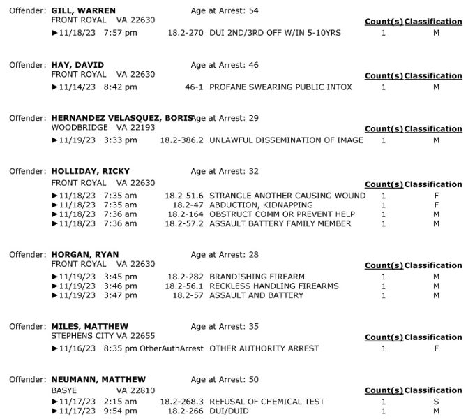 POLICE: 7 Day FRPD Arrest Report 11/20/2023