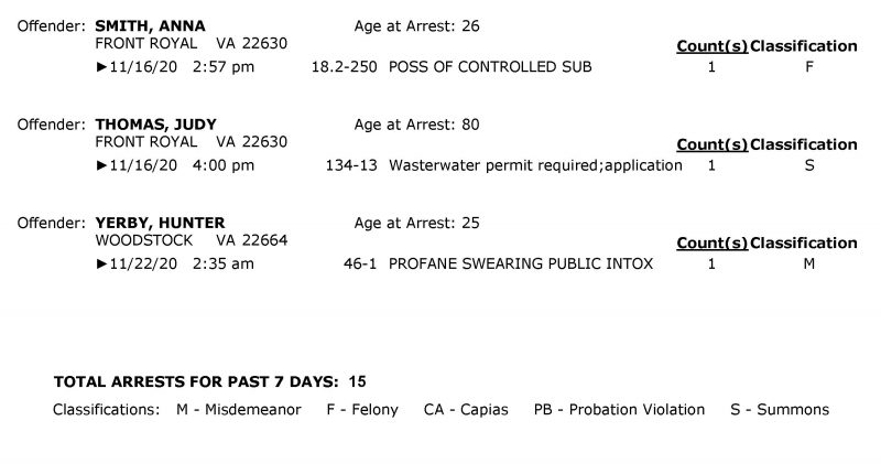 POLICE: 7 Day FRPD Arrest Report 11/23/2020