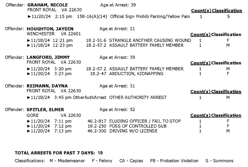 POLICE: 7 Day FRPD Arrest Report 11/26/2024