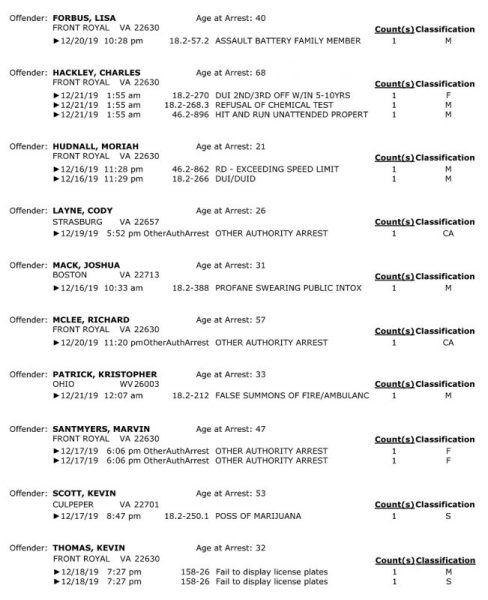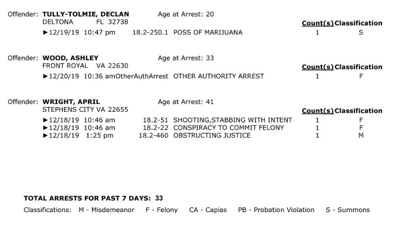 POLICE: 7 Day FRPD Arrest Report 12/23/2019