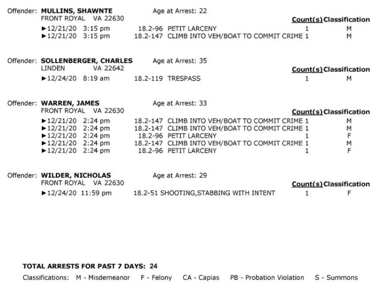 POLICE: 7 Day FRPD Arrest Report 12/28/2020