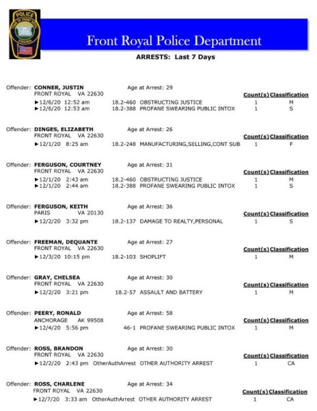POLICE: 7 Day FRPD Arrest Report 12/7/2020