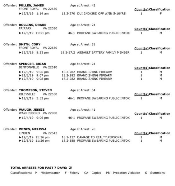 POLICE: 7 Day FRPD Arrest Report 12/9/2019