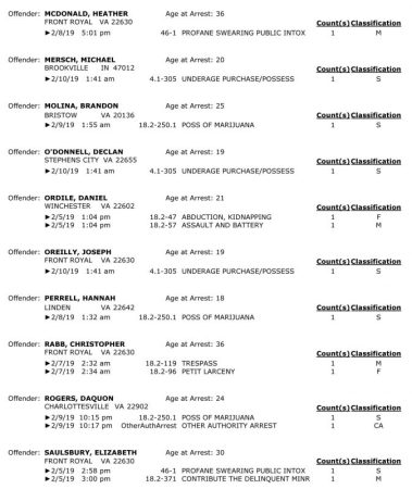 POLICE: 7 Day FRPD Arrest Report 2/11/2019