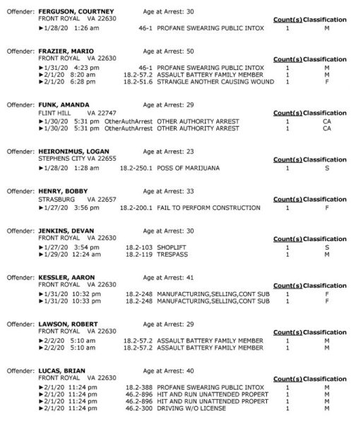 POLICE: 7 Day FRPD Arrest Report 2/3/2020
