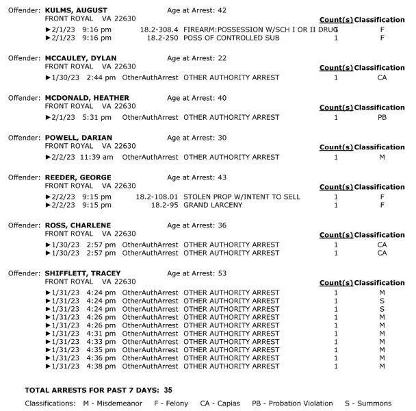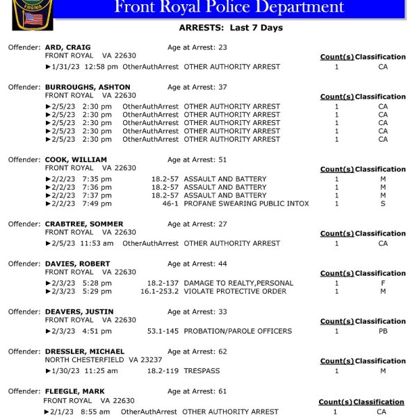 POLICE: 7 Day FRPD Arrest Report 2/6/2023