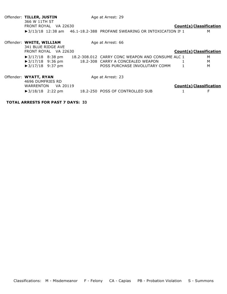 POLICE: 7 Day FRPD Arrest Report 3/19/2018