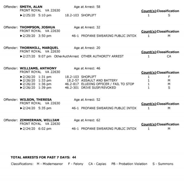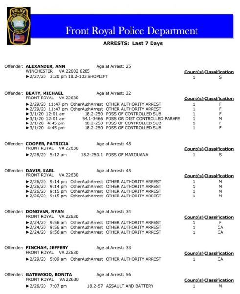 POLICE: 7 Day FRPD Arrest Report 3/2/2020