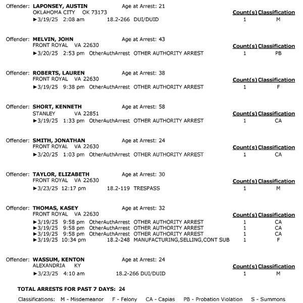POLICE: 7 Day FRPD Arrest Report 3/24/2025