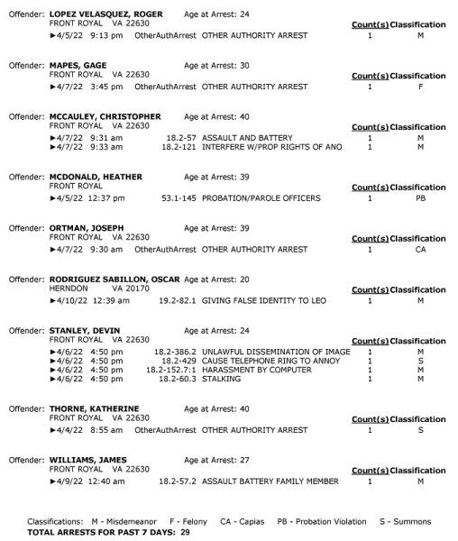POLICE: 7 Day FRPD Arrest Report 4/11/2022