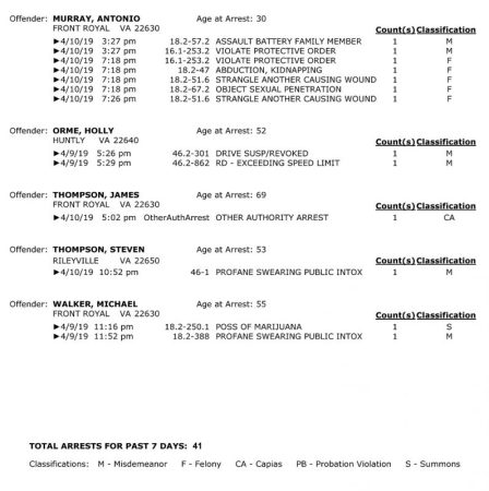 POLICE: 7 Day FRPD Arrest Report 4/15/2019