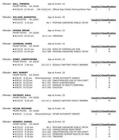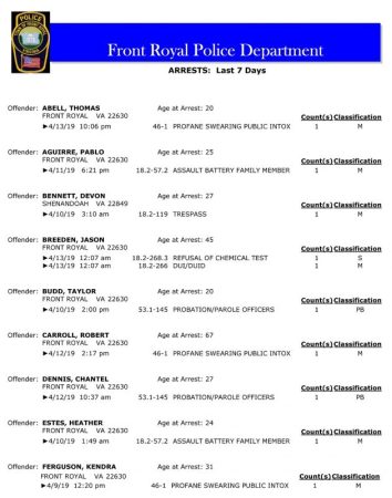 POLICE: 7 Day FRPD Arrest Report 4/15/2019