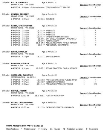 POLICE: 7 Day FRPD Arrest Report 4/29/2019