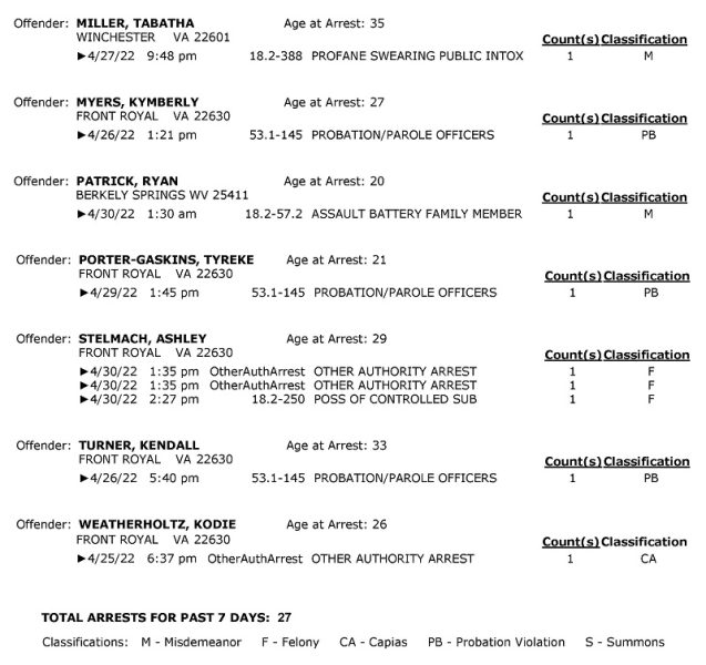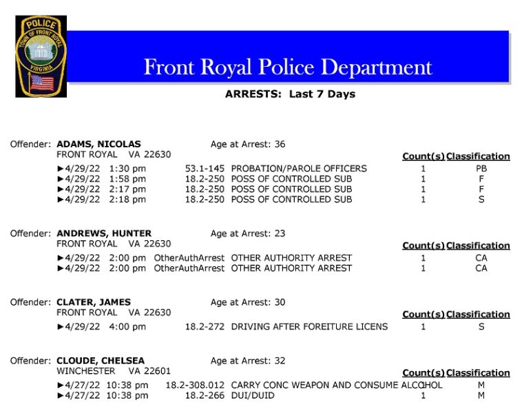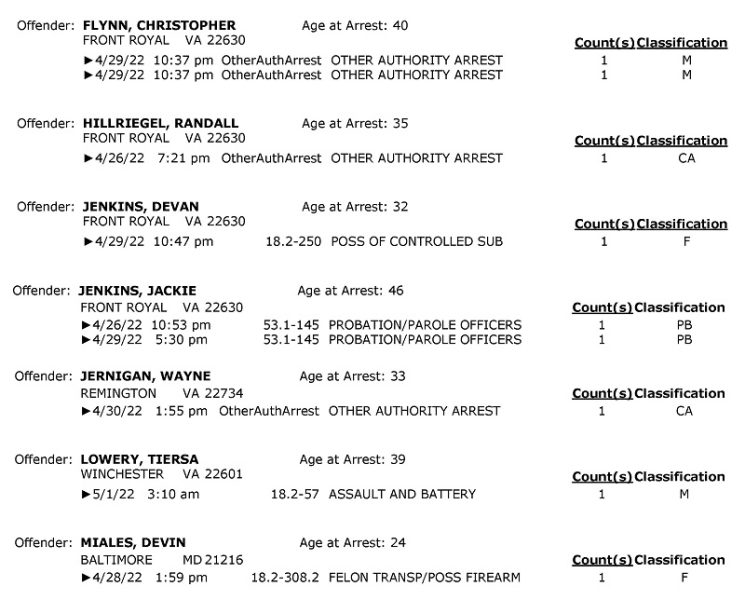POLICE: 7 Day FRPD Arrest Report 5/2/2022