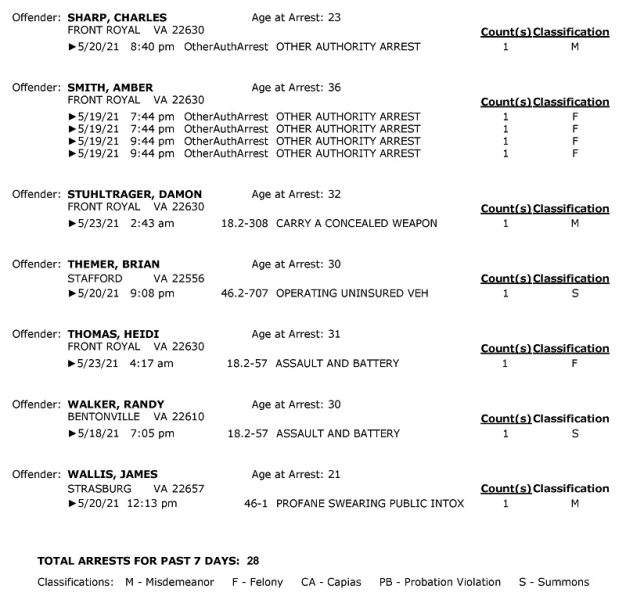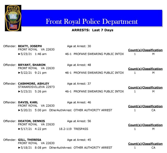 POLICE: 7 Day FRPD Arrest Report 5/24/2021
