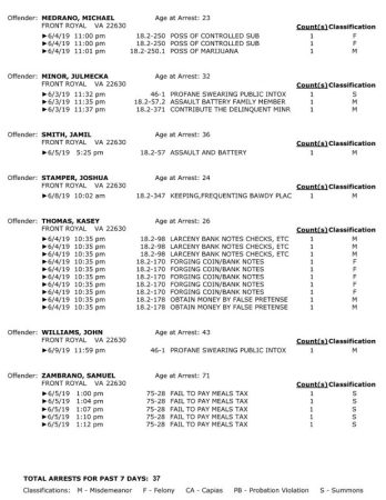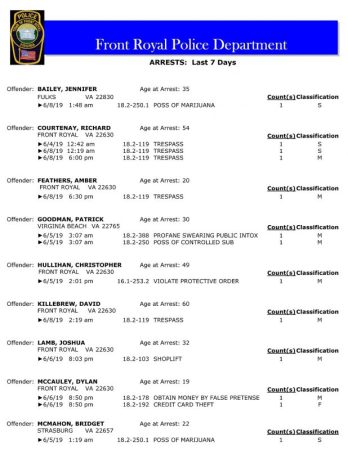 POLICE: 7 Day FRPD Arrest Report 6/10/2019