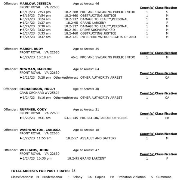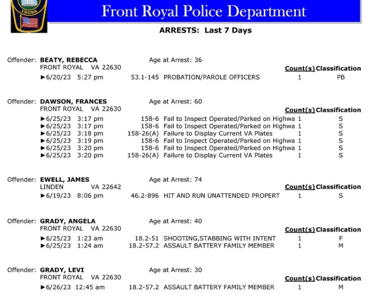 POLICE: 7 Day FRPD Arrest Report 6/26/2023