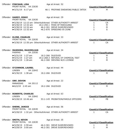 POLICE: 7 Day FRPD Arrest Report 6/3/2019
