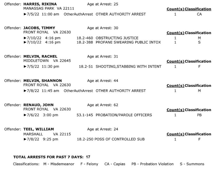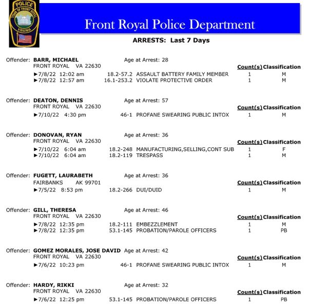 POLICE: 7 Day FRPD Arrest Report 7/11/2022