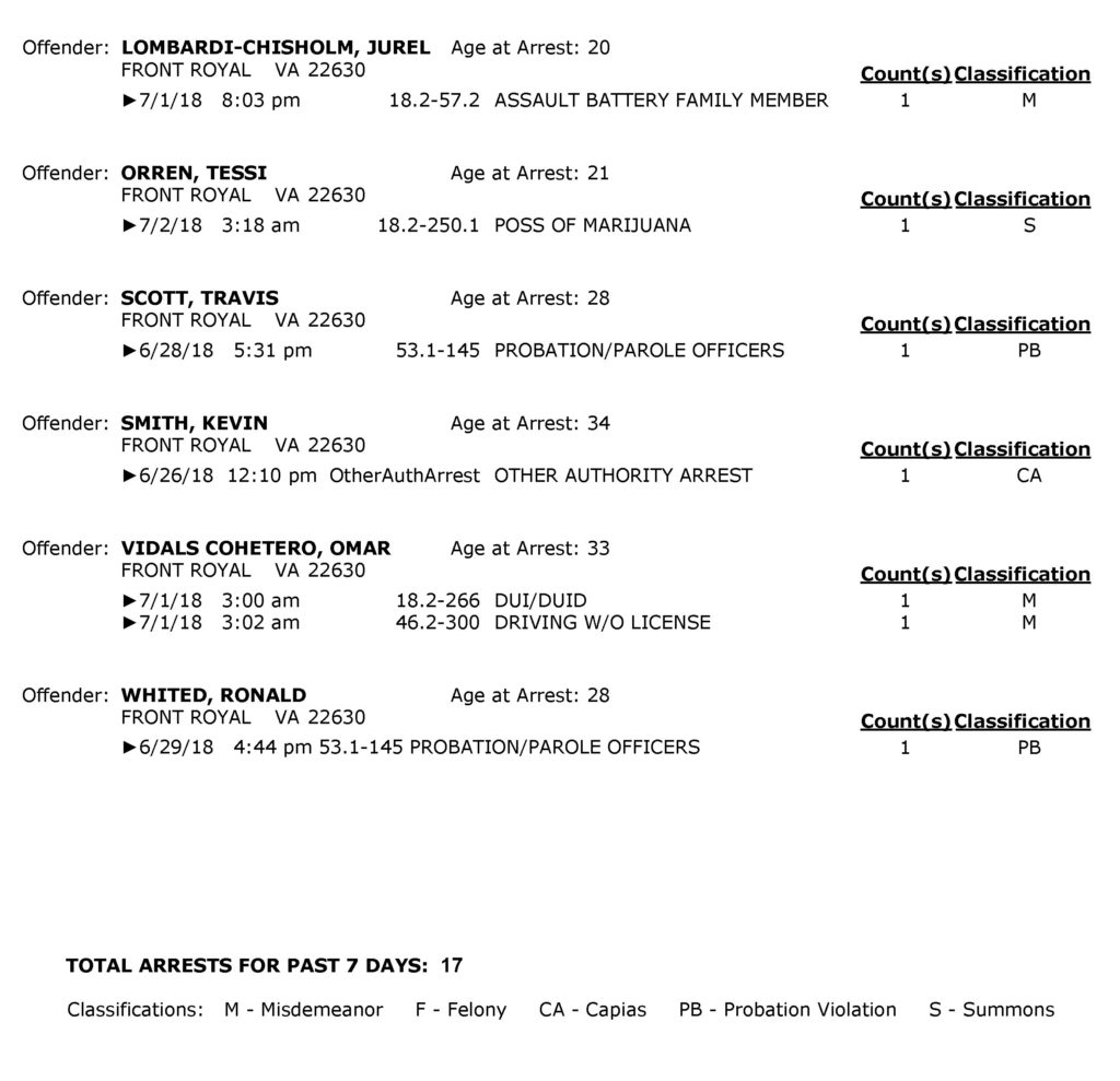 POLICE: 7 Day FRPD Arrest Report 7/2/2018
