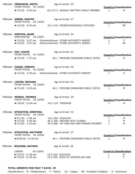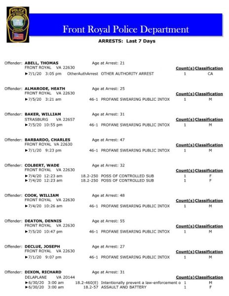 POLICE: 7 Day FRPD Arrest Report 7/6/2020