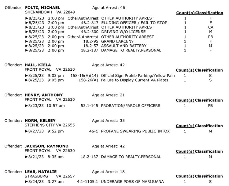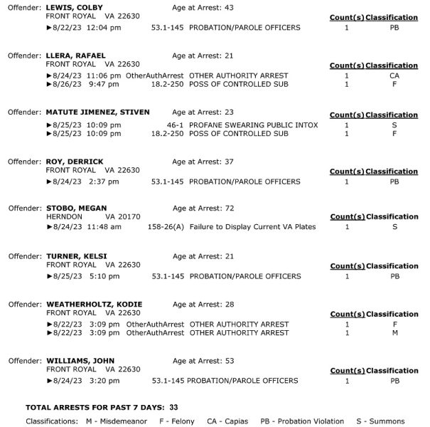 POLICE: 7 Day FRPD Arrest Report 8/28/2023