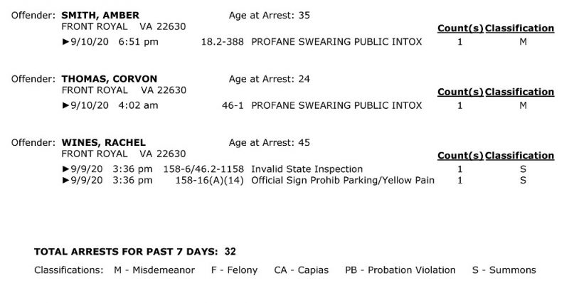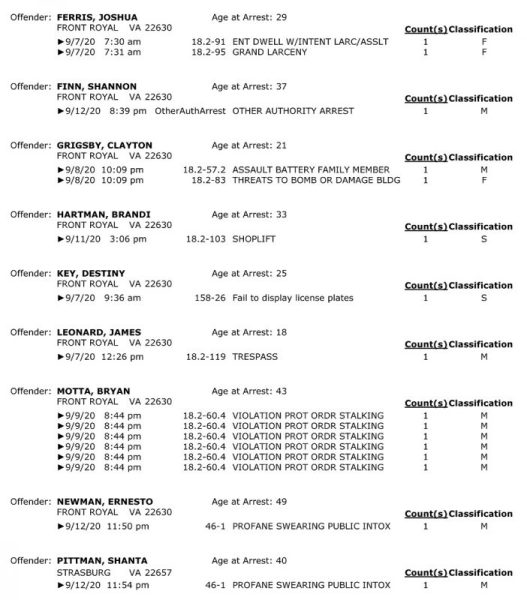 POLICE: 7 Day FRPD Arrest Report 9/14/2020