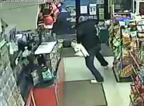 The suspect is believed to be a white male. He was wearing a camouflage ski mask, black jacket, blue jeans, black gloves and white sneakers. Witnesses described the man as having a deep voice.