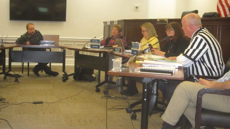 Pre-meeting Interim County Administrator, or should we say referee, David Martin told Supervisor Stanmeyer to play his game and not fear the ref’s whistle. Below, ref Martin and friends man the right side, at least from this angle, work session table.