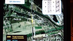 “So, we’ll be either famous OR infamous.” — was the reaction of Warren County Board of Supervisors Chair Linda Glavis to information that the Quadrant Roadway Intersection (QRI) design connecting Route 55 East (Strasburg Road) and the still-under-construction South Fork Bridge will be a first of its kind throughout the United States.