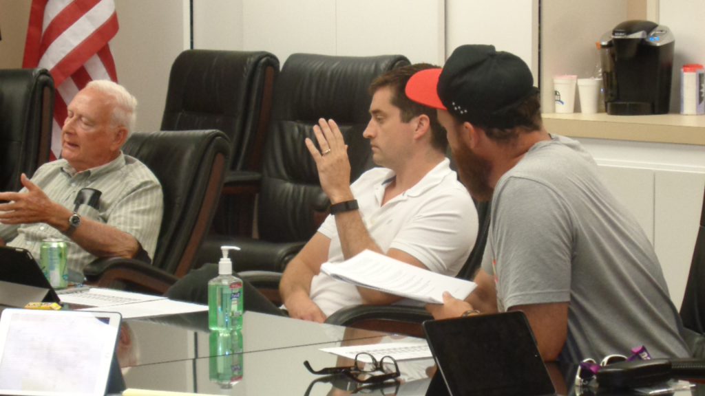 Vice-Mayor Tewalt makes a point as Councilmen Meza and Morrison wait their turn.