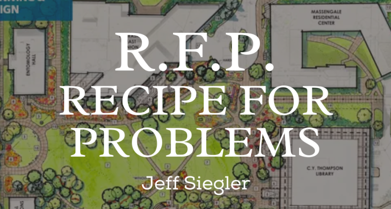 A little bit of background here for the uninitiated, RFP stands for request for proposals. This is a municipality’s way of announcing that they are seeking out firms to respond to a project- kind of like a casting call. They are asking qualified firms to submit a proposal for the work as described in the RFP. There are a number of inherent problems with the RFP process, but let us set that aside for now. This particular community that sent me an email is seeking out planning firms to put together a proposal for a downtown plan. Then a committee or project team working on behalf of the municipality will review proposals, select a few firms to interview and award the contract to one of those firms.
