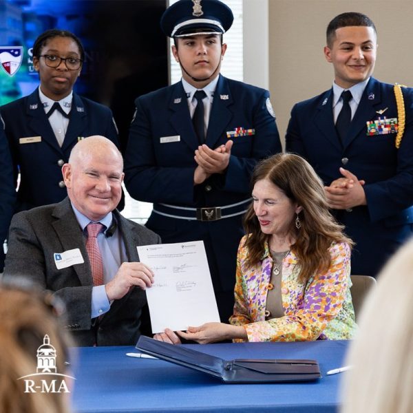 SU President Tracy Fitzsimmons, PhD, and retired United States Air Force Brig. Gen. David Wesley, R-MA’s president, signed a memorandum of understanding (MOU) that joins both schools in a year-long partnership that can be renewed for successive one-year terms.