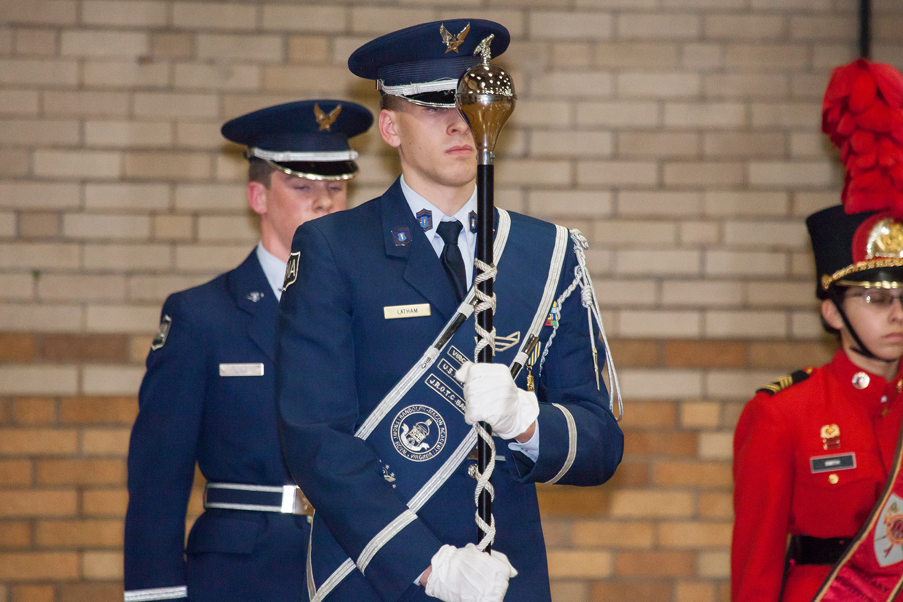 R-MA junior Ryan Latham of Amissville gives a gold-medal performance as drum major during the Military School Band and Choir Festival. Photo by Misti Walters, R-MA Photography.