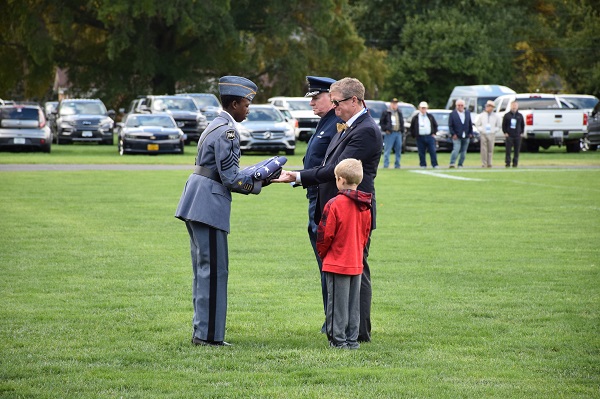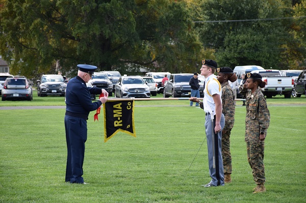The weekend summary is not complete without mentioning the outstanding parade performance on Saturday. Cadets marched beautifully while the band played, the flag corps (Middle School students) presented international flags with honor, the Color Guard was sharp, and our rifle team shared a gun salute in perfect timing. This year’s Homecoming flag was presented to Mr. Jonathan Ezell in honor of his many years of service to R-MA as an esteemed member of the faculty, principal of the Middle School, Upper School Academic Dean, Interim President, and Vice President of the Academy. Mr. Ezell retired from R-MA in 2019. Joining him to receive the flag was his grandson, Beowulf. Special thanks to Front Royal Mayor Lori A. Cockrell (proud aunt of current R-MA cadets Clayton and Madagan Athey ’24) and Vice Mayor Wayne Sealock ’73 for attending the parade and cheering on R-MA Yellow Jackets during the football game!