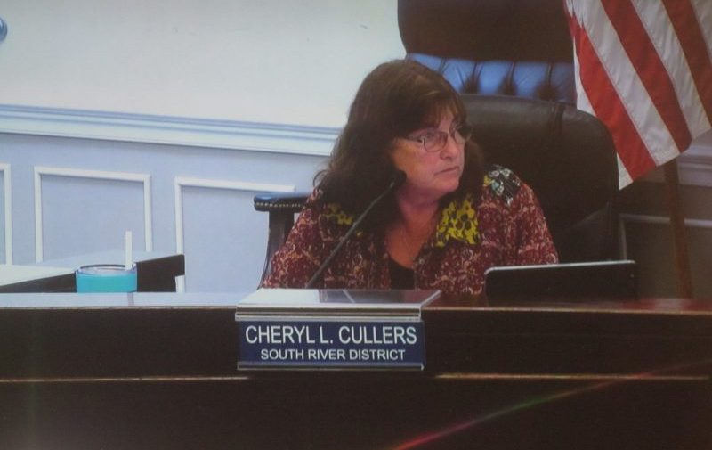 It was the current lone dissenting board voice on the Samuels Library and other funding decisions, South River District’s Cheryl Cullers, who began the Cook replacement discussion (3:00:06 Linked County video mark). Her stance was that in the wake of primary results indicating a large, involved pro-Samuels Library funding public majority, why wait until January to seat the lone remaining Fork District ballot candidate, Samuels Library funding supporter Hugh Henry.