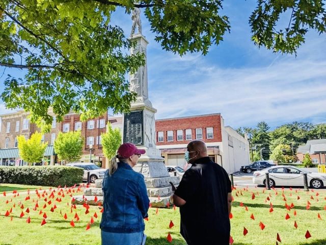 The recently controversial, circa mid-2020, Confederate Soldier statue on the Warren County Courthouse grounds in the center of the Town of Front Royal is about to get some company. That company according to a press release issued by Coming to the Table on Thursday, September 23, will be marker flags to represent what is cited as over 1100 people – men, women, and children, who were enslaved in Warren County at the outset of the Civil War.