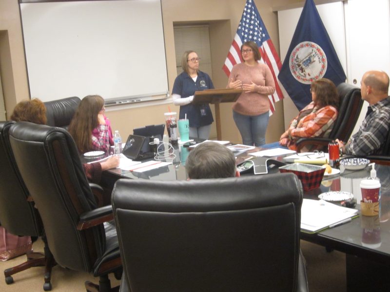Town Planning Director Lauren Kopishke, right at the podium, and Town Property Maintenance Official Monica McClure explain code and personnel limitations in their department’s ability to directly address rental property issues beyond a certain point.