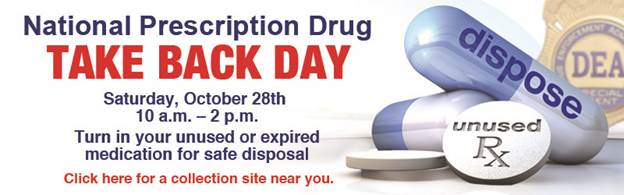 The statewide event was part of an ongoing cooperative effort partnering local, state and federal law enforcement in a public health initiative. The goal is to both “prevent pill abuse and theft by ridding … homes of potentially dangerous expired, unused, and unwanted prescription drugs” and provide a safer way for disposal.