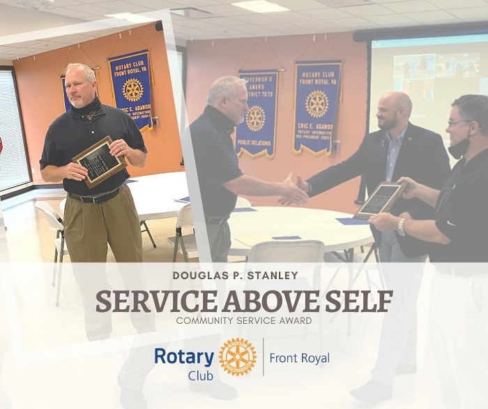 It is the objective of the Rotary Club of Front Royal to recognize individuals within the Front Royal-Warren County community for contributions that improve the quality of life of its citizens. The award is named after Douglas P. “Doug” Stanley in recognition of his 25 years of service to Rotary Club of Front Royal and Front Royal-Warren County community.