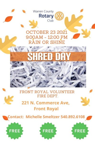 Come out and take advantage of this free service. Clean out those offices and filing cabinets and join us! The Rotary Club of Warren County makes it easy to drive right through the parking lot at the fire station.