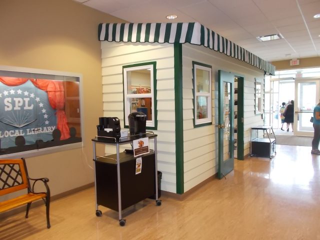 Just inside the library’s main, rear parking lot entrance lies this quaint ‘home’ for books for sale, with coffee percolating just outside – Royal Examiner Photos/Roger Bianchini