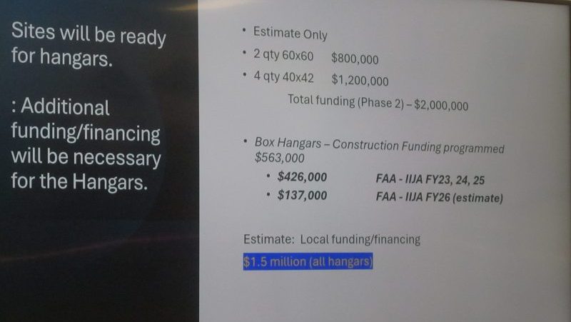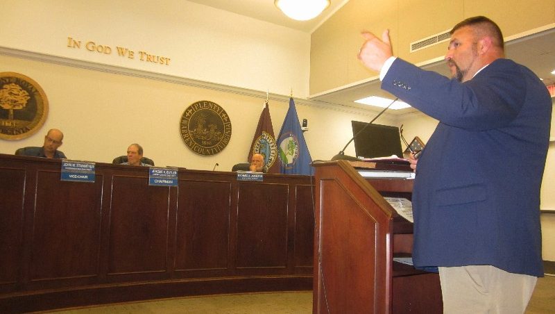 County Public Works Director Mike Berry gestures toward graphics describing costs and other variables in upgrades to the County overseen FRR (Front Royal Airport). Royal Examiner Photos Roger Bianchini