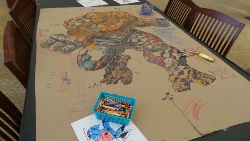 There was not only gaming and costuming, but dancing too. Below, this art project looks like it has been a group effort over the course of the day; and our final shot appears to be a Viking ship manned by a helpful library crew.