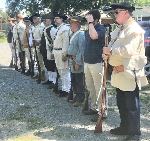 Muskets at order arms, from left to right: Ken Bonner, Will Reynolds, John Petrie, Richard Tyler, Paul Christensen, Andrew Mills, Mark Sink, Bill Weiss and Steve Riddle. (Photo / Cynthia Strassberg)